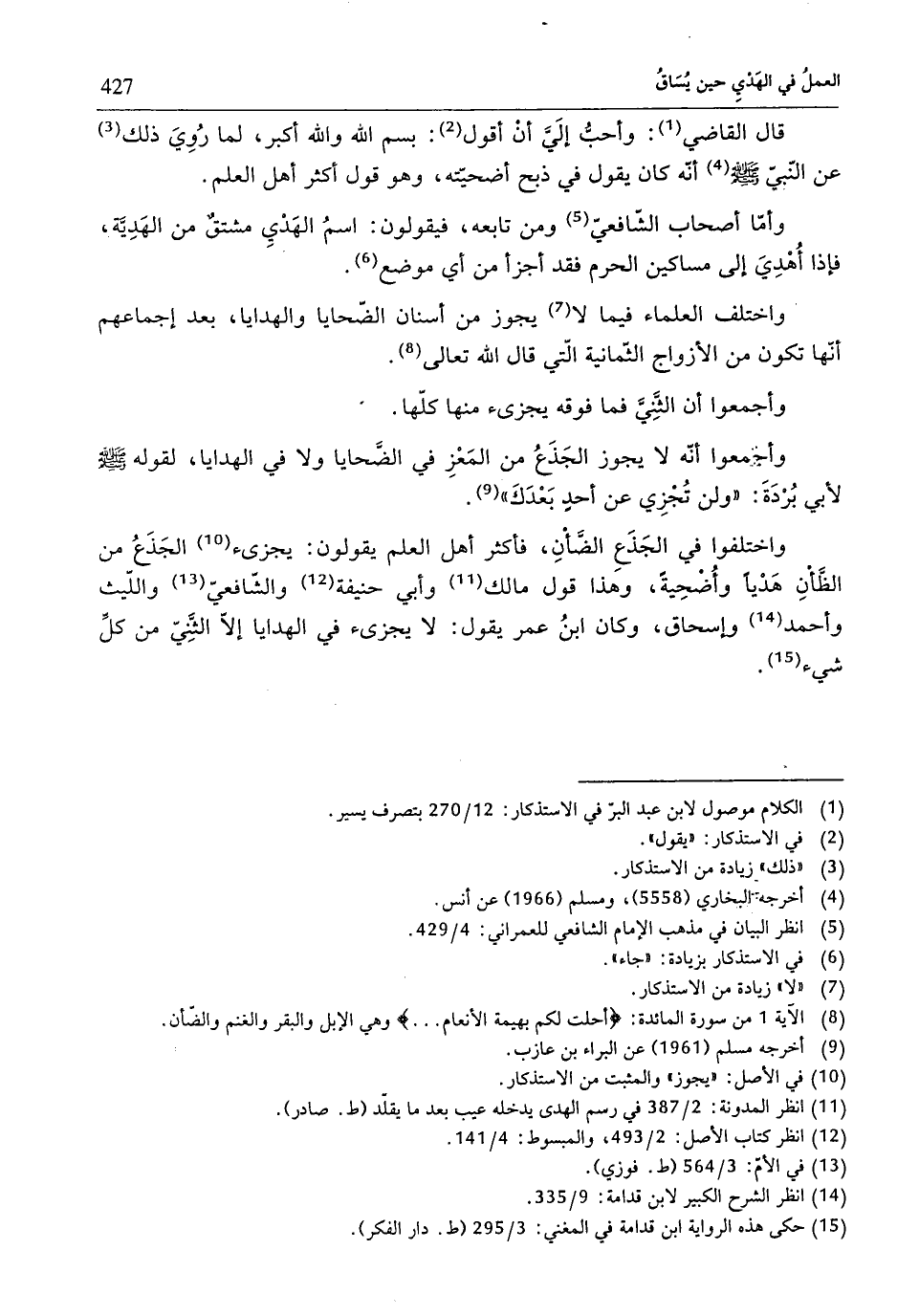 (¬11) انظر المدونة: 2/ 387 في رسم الهدى يدخله عيب بعد ما يقلّد (ط. صادر).