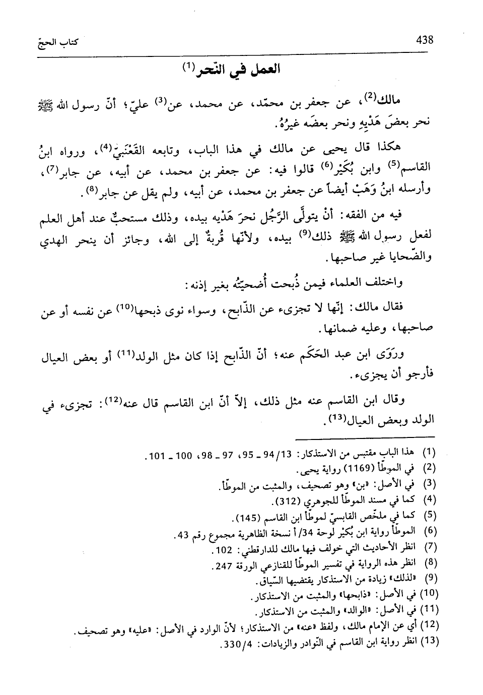 مالك (¬2)، عن جعفر بن محمّد، عن محمّد، عن (¬3) علىّ؛ أنّ رسول الله - صلّى الله عليه وسلم - نحر بعضَ هَدْيِهِ ونحر بعضَه غيرُهُ.