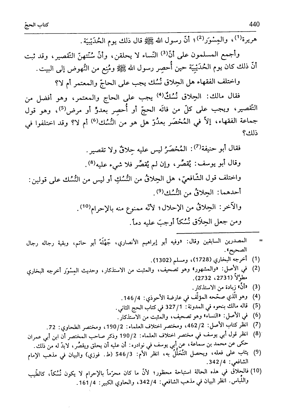 (¬8) انظر قول أبي يوسف في مختصر اختلاف العلماء: 2/ 190 وذكر صاحب المختصر أنّ ابن أبي عمران حكى عن محمّد بن سماعة، عن أبي يوسف في نوادره: أنّ عليه أنّ يحلق ويقصِّر، لابدّ له من ذلك.