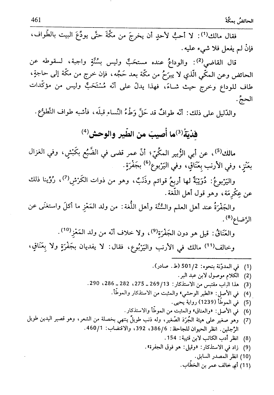 (¬4) في الأصل: "الطير الوحشي" والمثبت من الاستذكار والموطّأ.