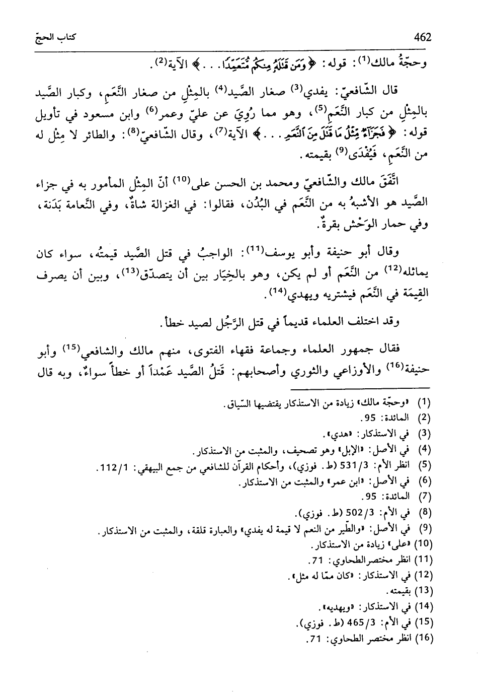 (¬9) في الأصل: " والطّير من النعم لا قيمة له يفدي" والعبارة قلقة، والمثبت من الاستذكار.