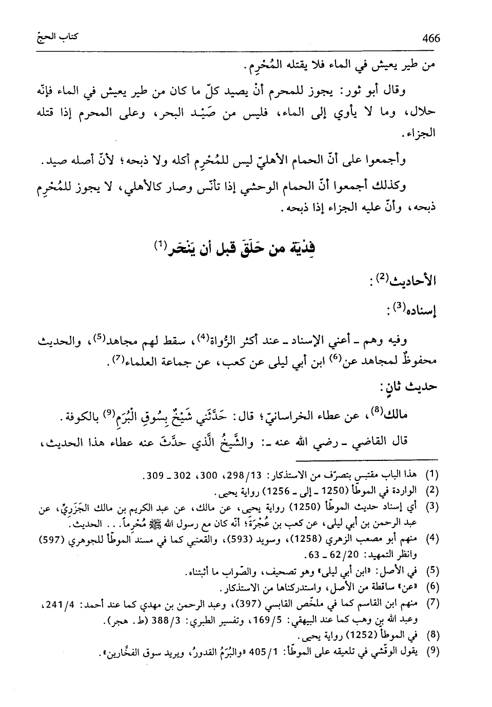 (¬3) أي إسناد حديث الموطّأ (1250) رواية يحيى، عن مالك، عن عبد الكريم بن مالك الجَزَرِيِّ، عن عبد الرّحمن بن أبي ليلى، عن كعب بن عُجْرَةَ؛ أنّه كان مع رسول الله - صلّى الله عليه وسلم - مُحْرِمًا ... الحديث.