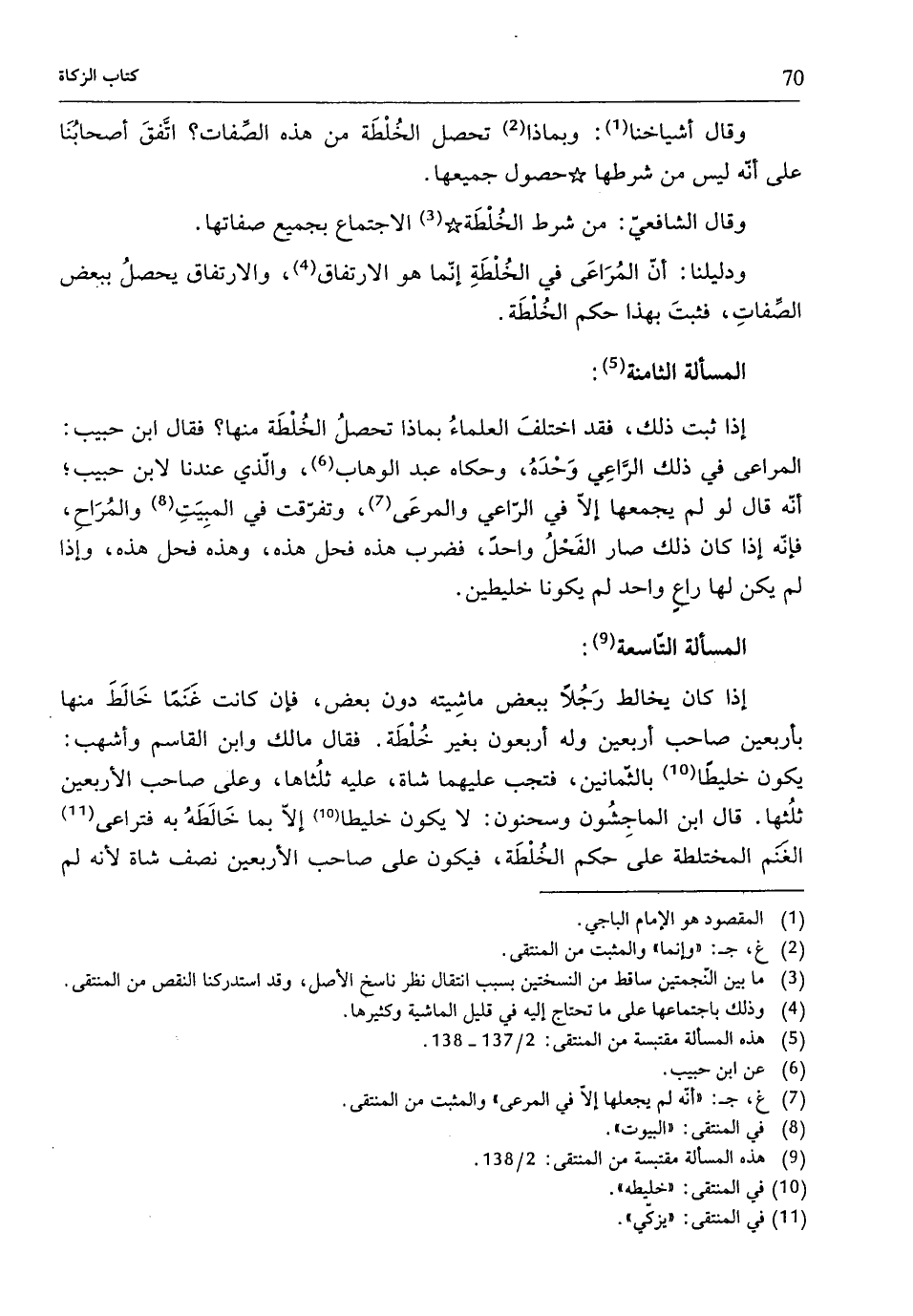 (¬9) هذه المسألة مقتبسة من المنتقى: 2/ 138.