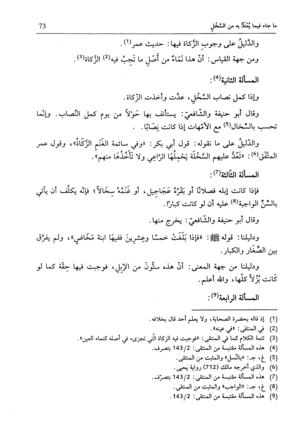 (¬9) هذه المسألة مقتبسة من المنتقى: 2/ 143.