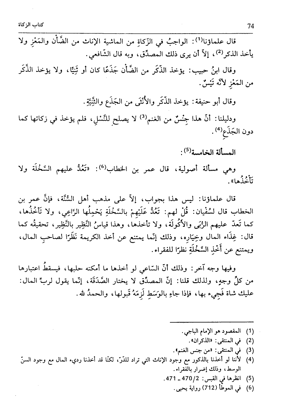 قال علماؤنا: ليس هذا بجواب، إلّا على مذهب أهل السُّنَّة، فإنَّ عمر بن الخطّاب قال لسُفْيان: قُل لهم: تَعُدُّ عَلَيْهِمْ بالسَّخْلَةِ يَحْمِلُها الرَّاعِي، ولا تَأخُذُها، كما تَعدّ عليهم الرُّبَى والأَكُولَة، ولا تأخذها، وهذا قياسُ النَّظِير بالنَّظِير، تحقيقُه كما قال: غِذَاء المال وخِيَارِه، وذلك إنّما يمتنع عن أخذ الكريمة نَظَرًا لصاحبِ المال، ويمتنع عن أَخْذِ السَّخْلَةِ نظرًا للفقراء.