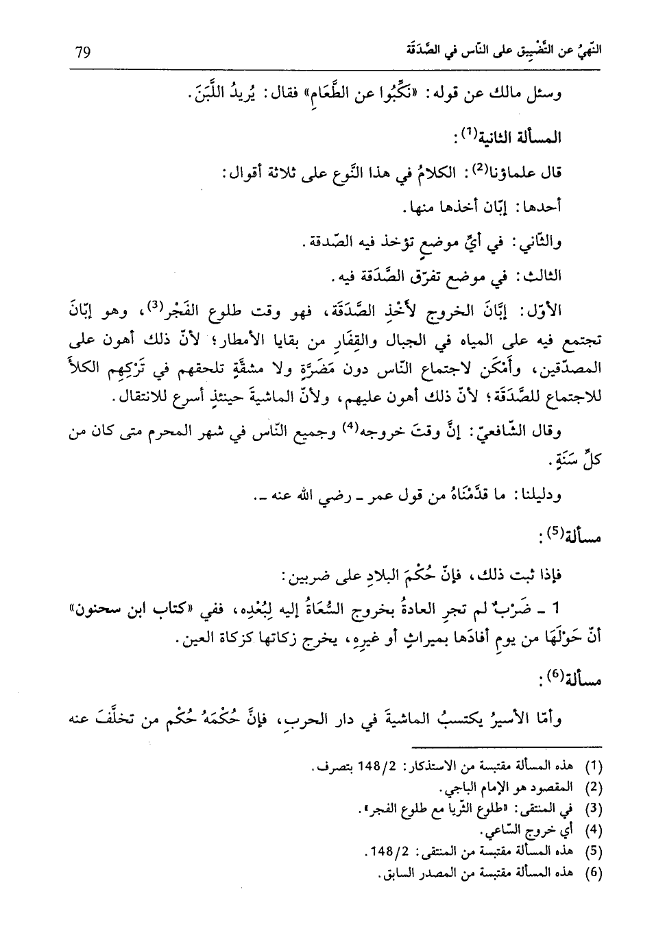 (¬5) هذه المسألة مقتبسة من المنتقى: 2/ 148.