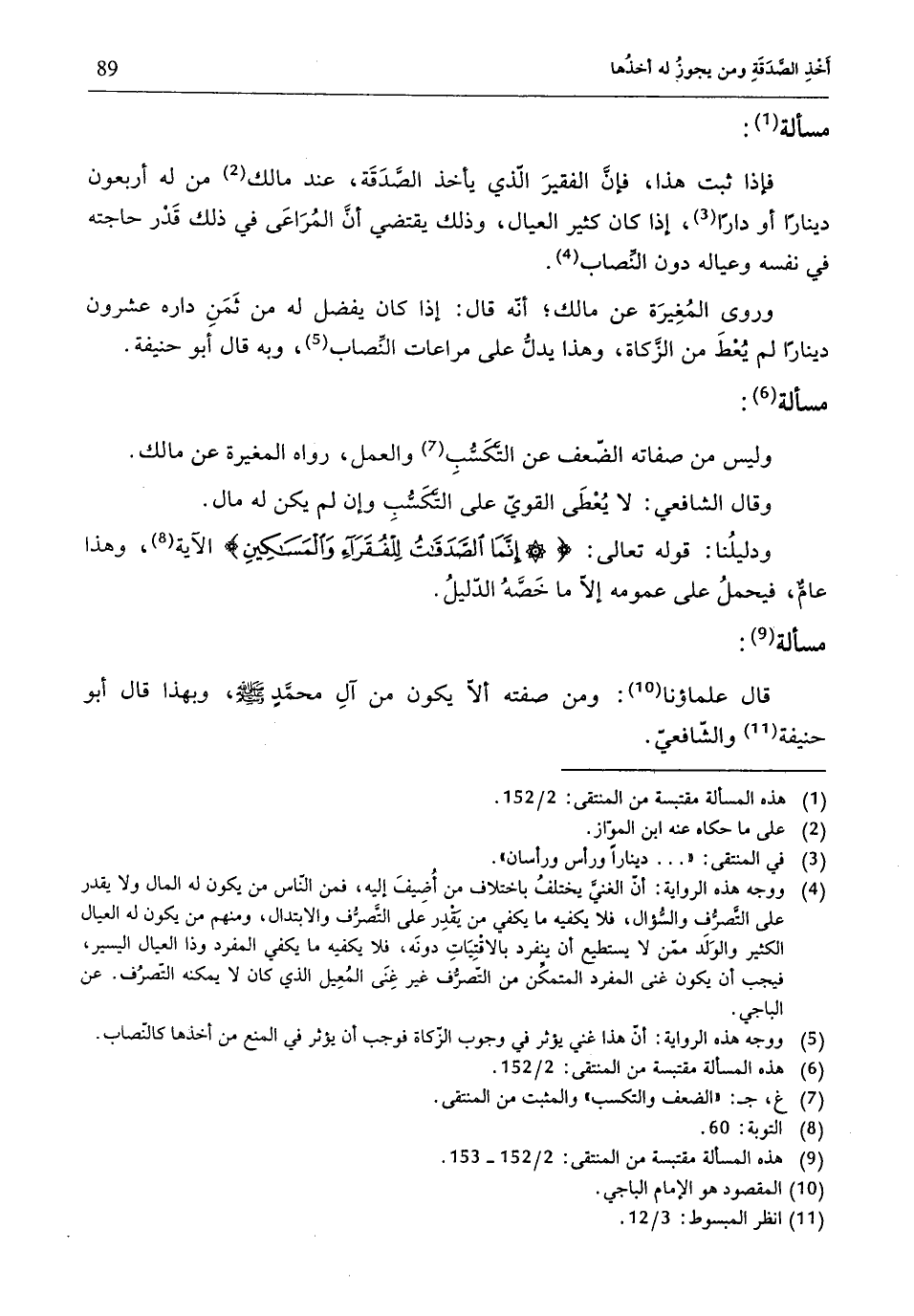 (¬9) هذه المسألة مقتبسة من المنتقى: 2/ 152 - 153.