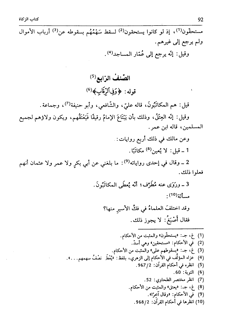 (¬10) انظرها في أحكام القرآن: 2/ 968.