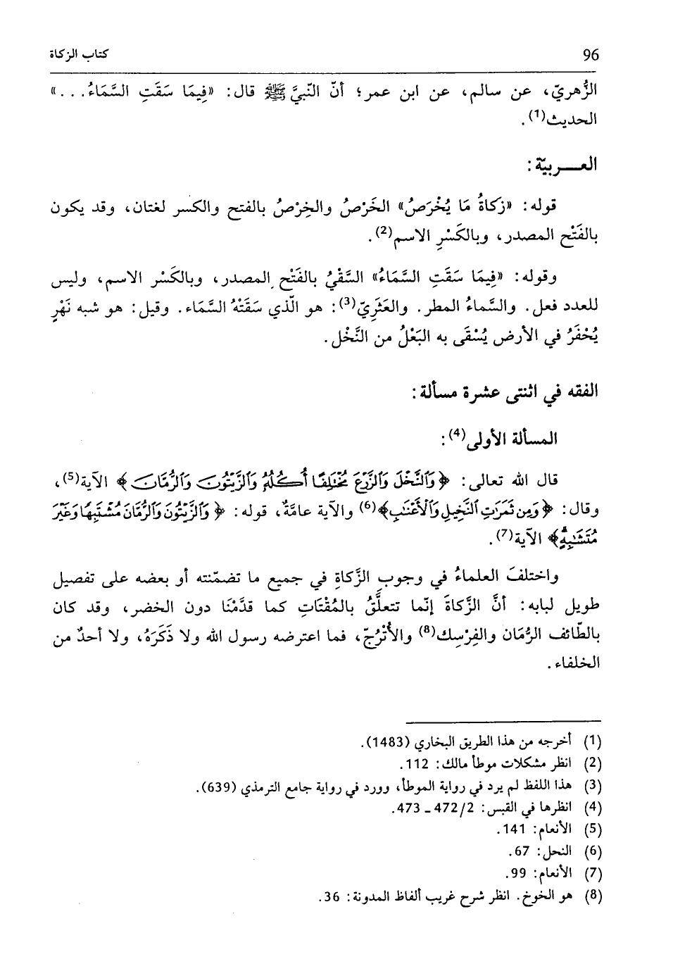قال الله تعالى: {وَالنَّخْلَ وَالزَّرْعَ مُخْتَلِفًا أُكُلُهُ وَالزَّيْتُونَ وَالرُّمَّانَ} الآية (¬5)، وقال: {وَمِنْ ثَمَرَاتِ النَّخِيلِ وَالْأَعْنَابِ} (¬6) والآية عامَّةٌ، قوله: {وَالزَّيْتُونَ وَالرُّمَّانَ مُشْتَبِهًا وَغَيْرَ مُتَشَابِهٍ} الآية (¬7).
