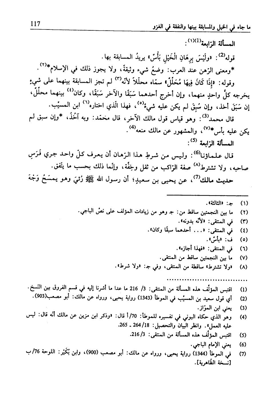 (¬1) اقتبس المؤلِّف هذة المسألة من المنتقى: 3/ 216 ما عدا ما أشرنا إليه في قسم الفروق بين النّسخ.