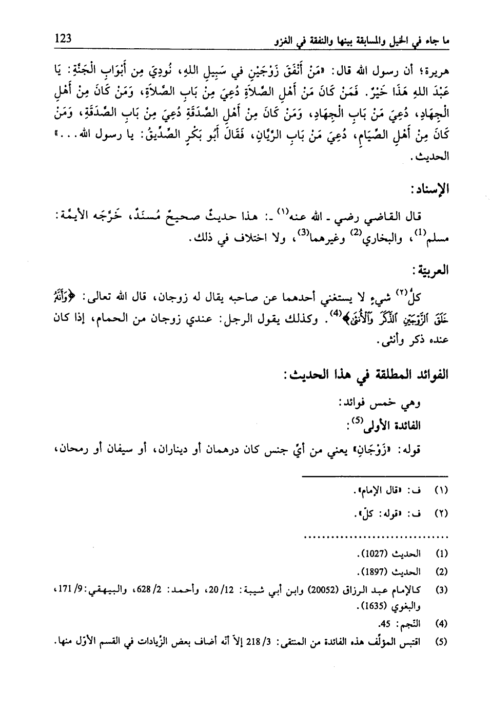 (¬5) اقتبس المؤلِّف هذه الفائدةُ من المنتقى: 3/ 218 إِلَّا أنّه أضاف بعض الزِّيادات في القسم الأوّل منها.