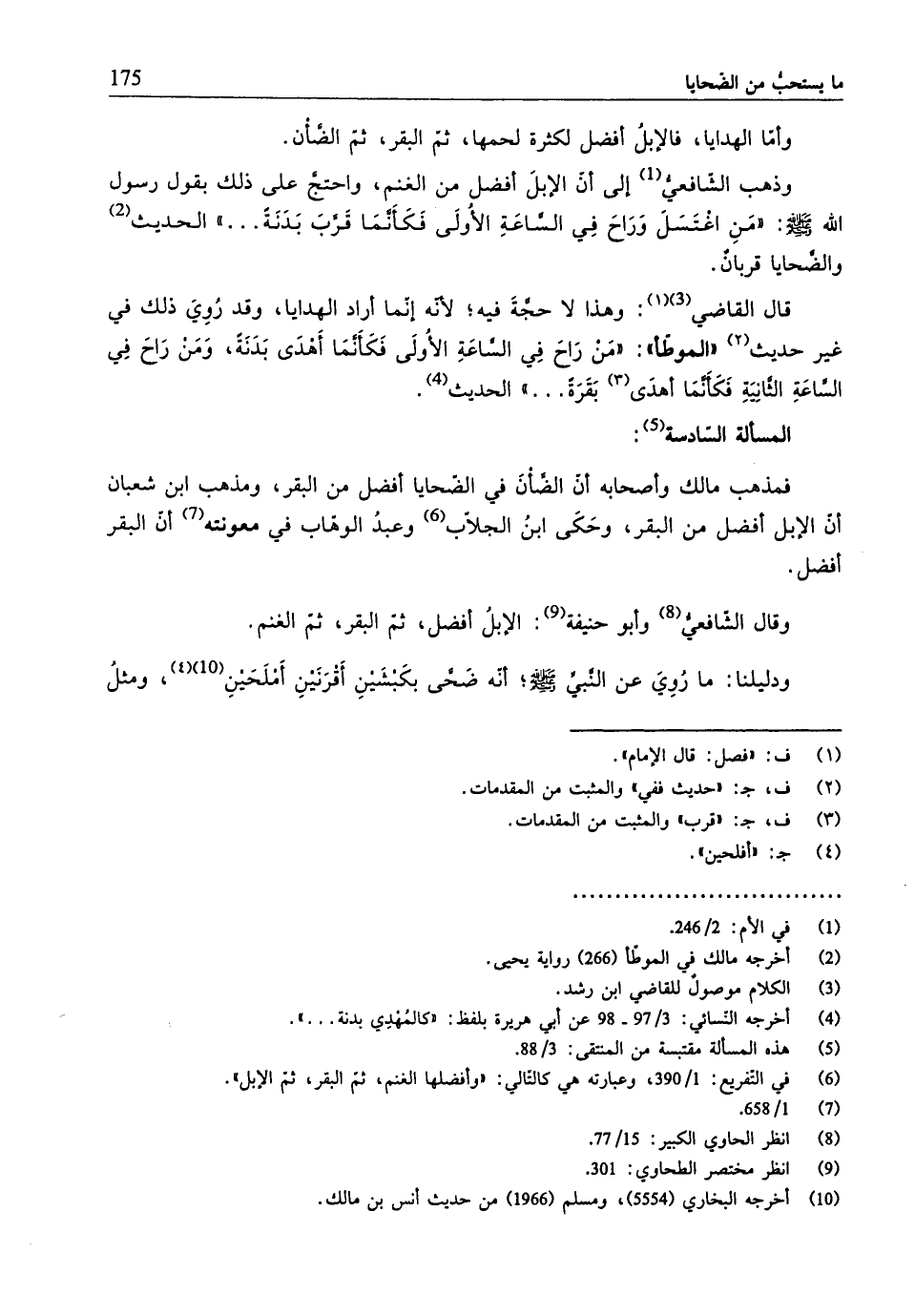 (¬6) في التفريع: 1/ 390، وعبارته هي كالتالي: "وأفضلها الغنم، ثمّ البقر، ثمّ الإبل".