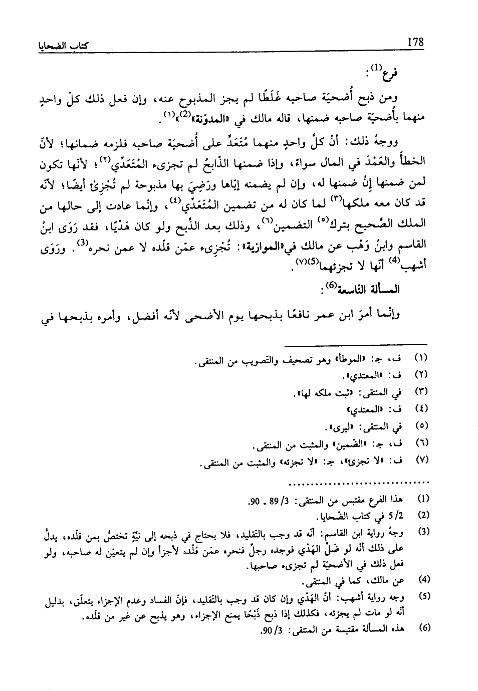 (¬6) هذه المسألة مقتبسة من المنتقى: 3/ 90.