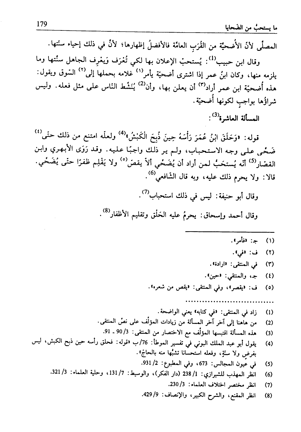 (¬3) هذه المسألة اقتبسها المؤلِّف مع الاختصار من المنتقى: 3/ 90 - 91.