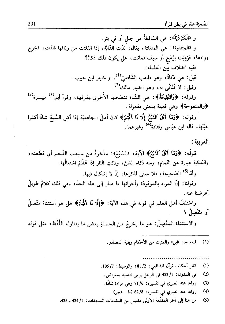 وقولنا: إنَّ المراد بالموقوذة وأخواتها ما صار إلى هذا الحدّ، وفي ذلك كلامٌ طويلٌ أعرضنا عنه.