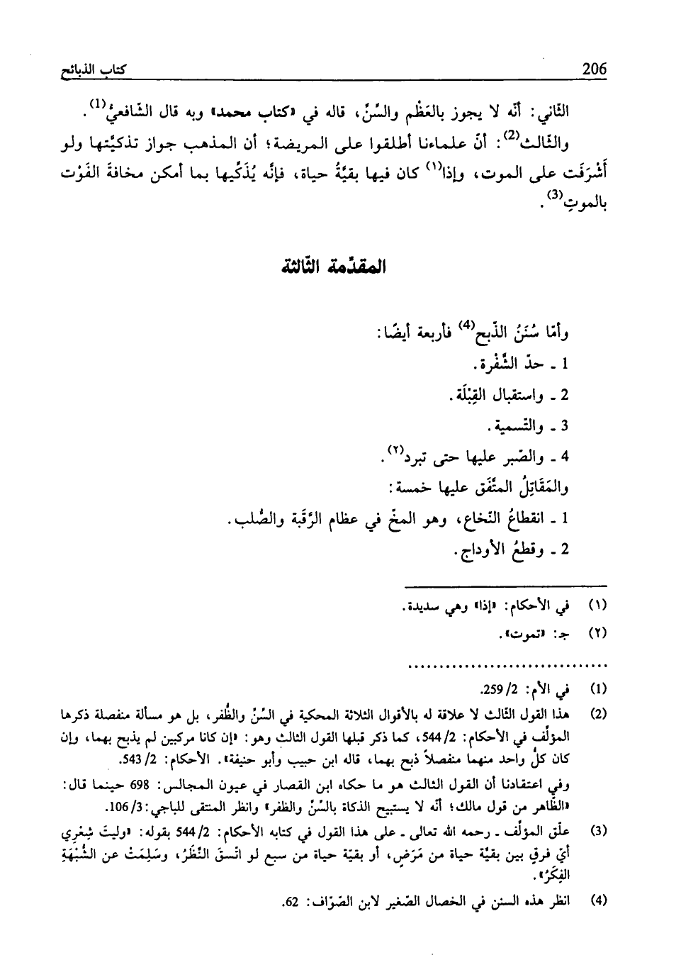 (¬2) هذا القول الثّالث لا علاقة له بالأقوال الثّلاثة المحكية في السِّنِّ والظُّفر، بل هو مسألة منفصلة ذكرها المؤلِّف في الأحكام: 2/ 544، كما ذكر قبلها القول الثّالث وهو: "إنَّ كانا مركبين لم يذبح بهما، وإن كان كلُّ واحد منهما منفصلًا ذبح بهما، قاله ابن حبيب وأبو حنيفة". الأحكام: 2/ 543.