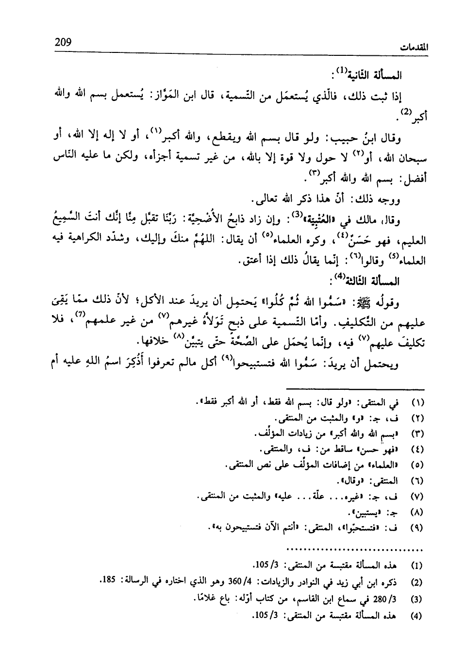 (¬4) هذه المسألة مقتبسة من المنتقى: 3/ 105.