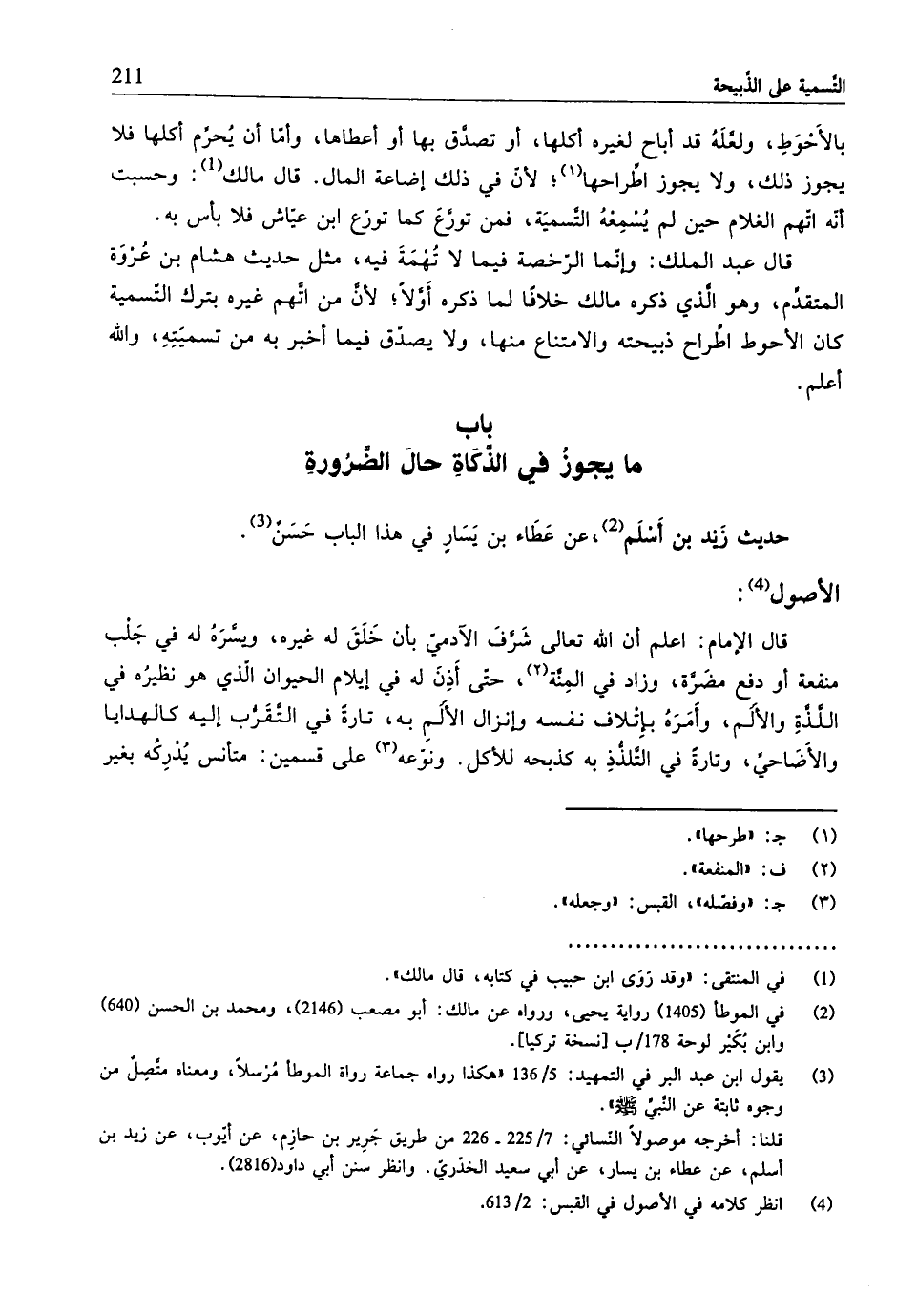 (¬3) يقول ابن عبد البرّ في التمهيد: 5/ 136 "هكذا رواه جماعة رواة الموطَّأ مُرْسلًا، ومعناه متَّصِلٌ من وجوه ثابتة عن النَّبىِّ - صلّى الله عليه وسلم -".