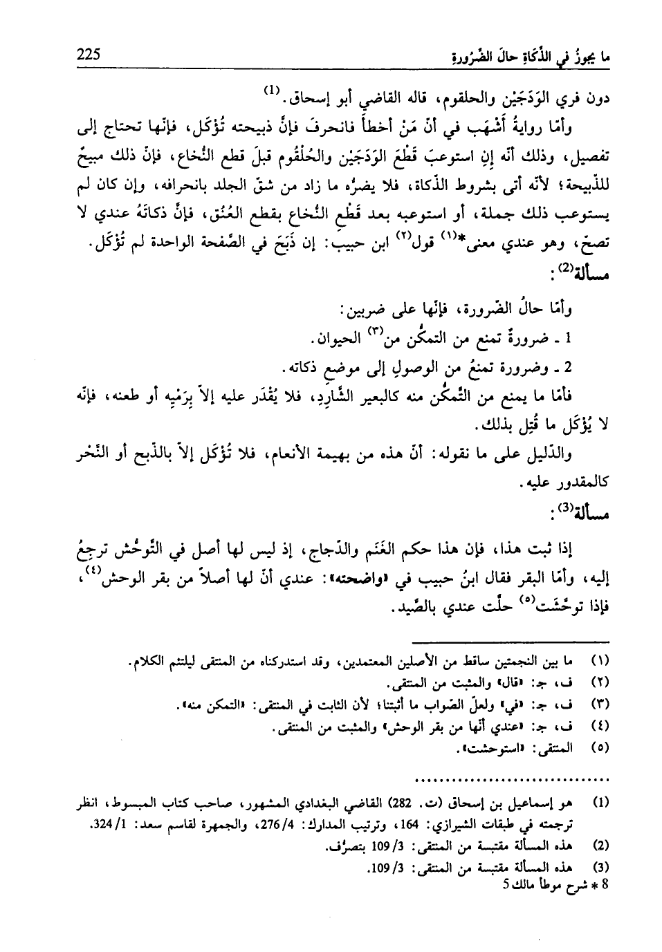 (¬1) هو إسماعيل بن إسحاق (ت.282) القاضي البغدادي المشهور، صاحب كتاب المبسوط، انظر ترجمته في طبقات الشيرازي: 164، وترتيب المدارك: 4/ 276، والجمهرة لقاسم سعد: 1/ 324.