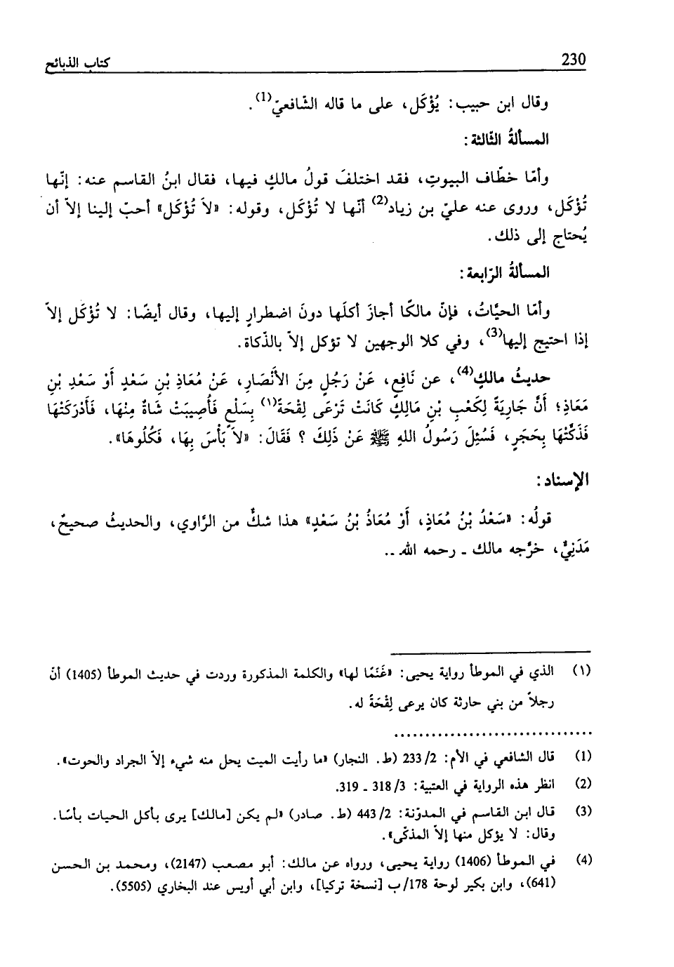 (¬3) قال ابن القاسم في المدوّنة: 2/ 443 (ط. صادر) "لم يكن [مالك] يرى بأكل الحيات بأسًا. وقال: لا يؤكل منها إِلَّا المذكّى".