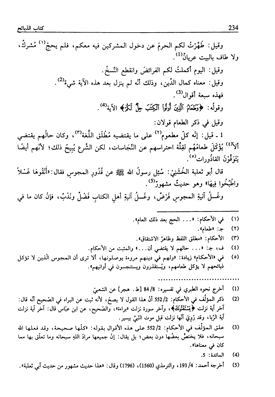 وقولُه: {وَطَعَامُ الَّذِينَ أُوتُوا الْكِتَابَ حِلٌّ لَكُمْ} الآية (¬4).