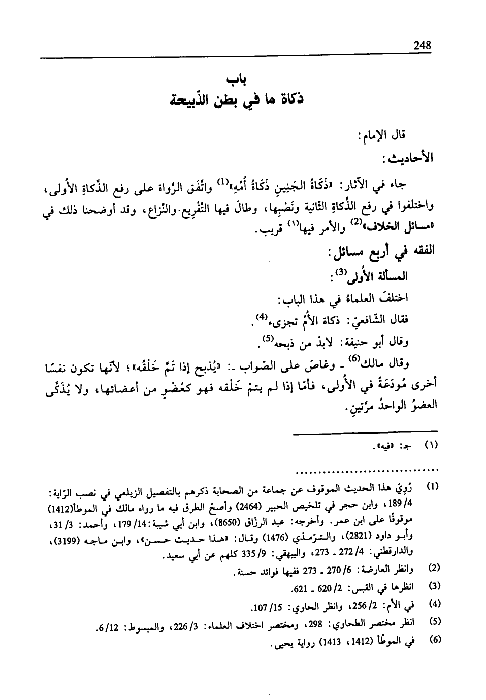 جاء في الآثار: "ذَكَاةُ الجَنِينِ ذَكَاةُ أُمِّهِ" (¬1) واتَّفَق الرُّواة على رفع الذَّكاةِ الأُولى،