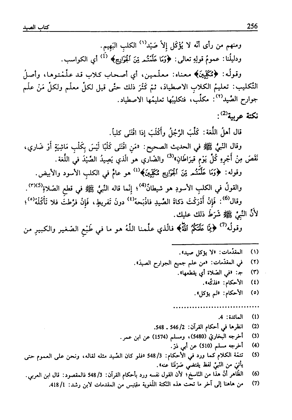 والقولُ في الكلبِ الأسودِ هو شيطانٌ (¬4)؛ إِنَّما قاله النَّبيُّ - صلّى الله عليه وسلم - في قطعِ الصّلاة (¬5). وقال (¬6):، فأن أَدرَكتَ ذكاةَ الصَّيدِ فاذبَحهُ دونَ تفريطٍ، فإنْ فرَّطتَ فلا تَأكُلْهُ؛ لأَنَّ النَّبِيِّ - صلّى الله عليه وسلم - شَرَطَ ذلك عليك.