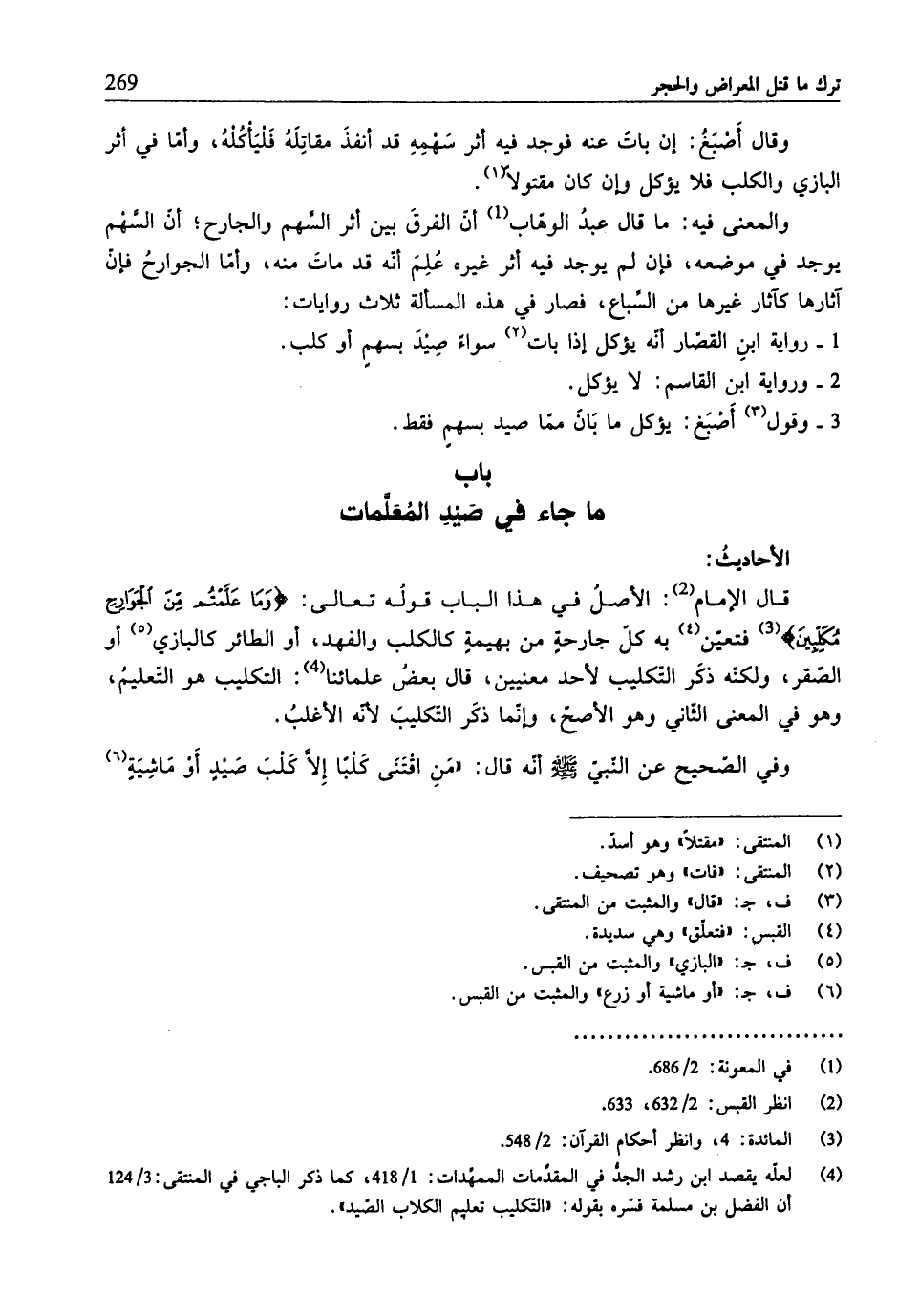 (¬4) لعلّه يقصد ابن رشد الجدُّ في المقدِّمات الممهِّدات: 1/ 418، كما ذكر الباجي في المنتقى: 3/ 124 أنّ الفضل بن مسلمة فنره بقوله: "التّكليب تعليم الكلاب الصَّيد".