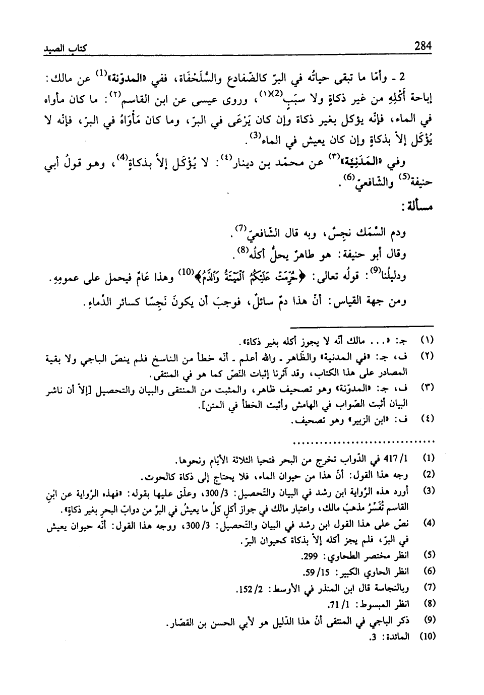 (¬3) أورد هذ. الرِّواية ابن رشد في البيان والتّحصيل: 3/ 300، وعلّق عليها بقوله: فهذه الرِّواية عن ابْنِ القاسم تُفَسِّرُ مذهبَ مالك، واعتبار مالك في جواز أكل كلِّ ما يعيشُ في البرِّ من دوابّ البحير بغير ذكاةٍ".