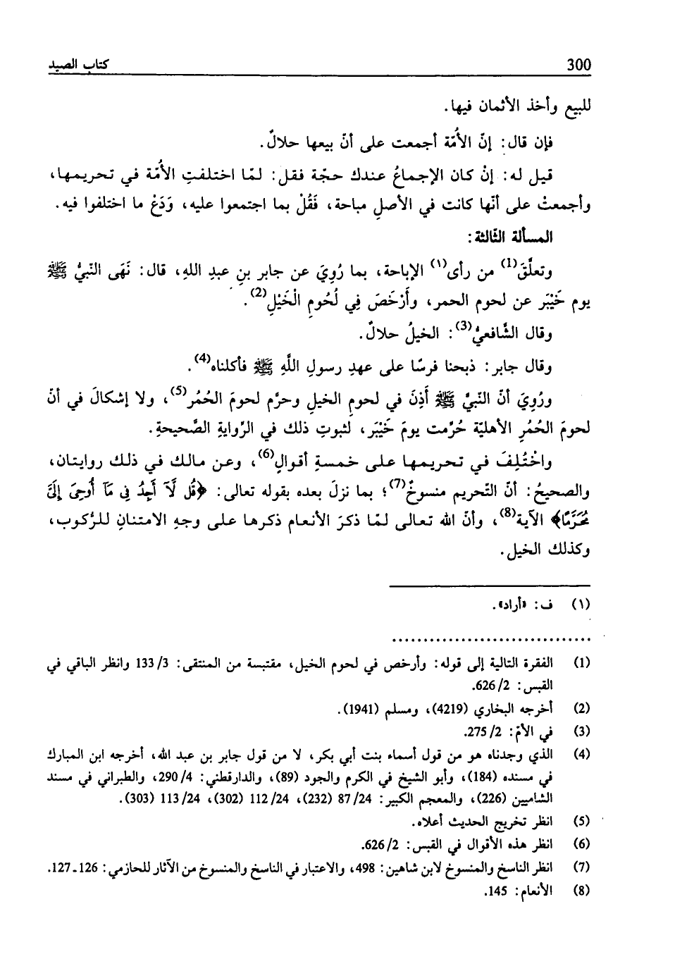 (¬1) الفقرة التالية إلى قوله: وأرخص في لحوم الخيل، مقتبسة من المنتقى: 3/ 133 وانظر الباقي في القبس: 2/ 626.