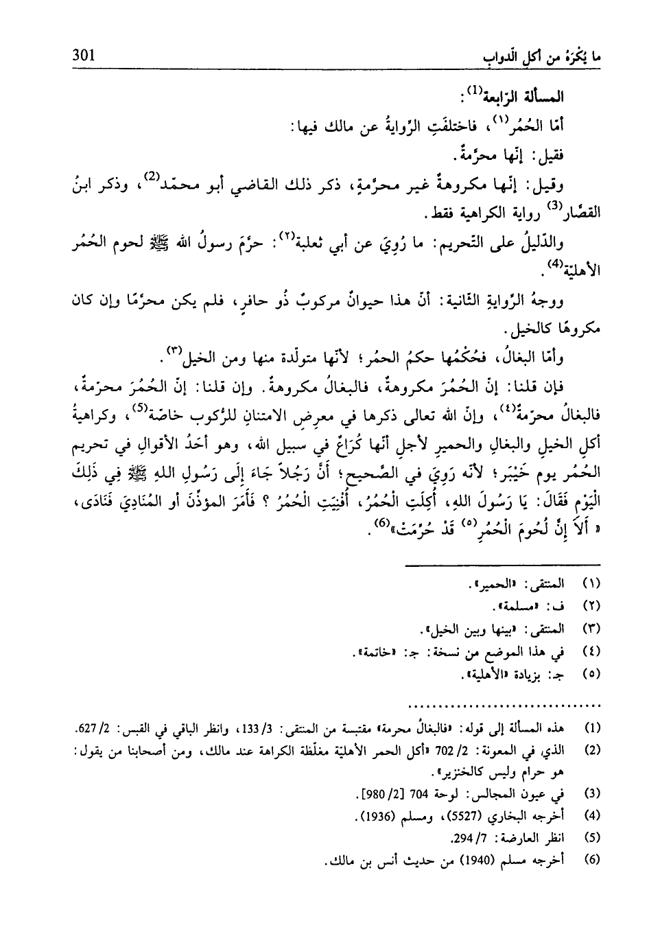 (¬1) هذه المسألة إلى قوله: "فالبغالُ محرمة" مقتبسة من المنتقى: 3/ 133، وانظر الباقي في القبس: 2/ 627.