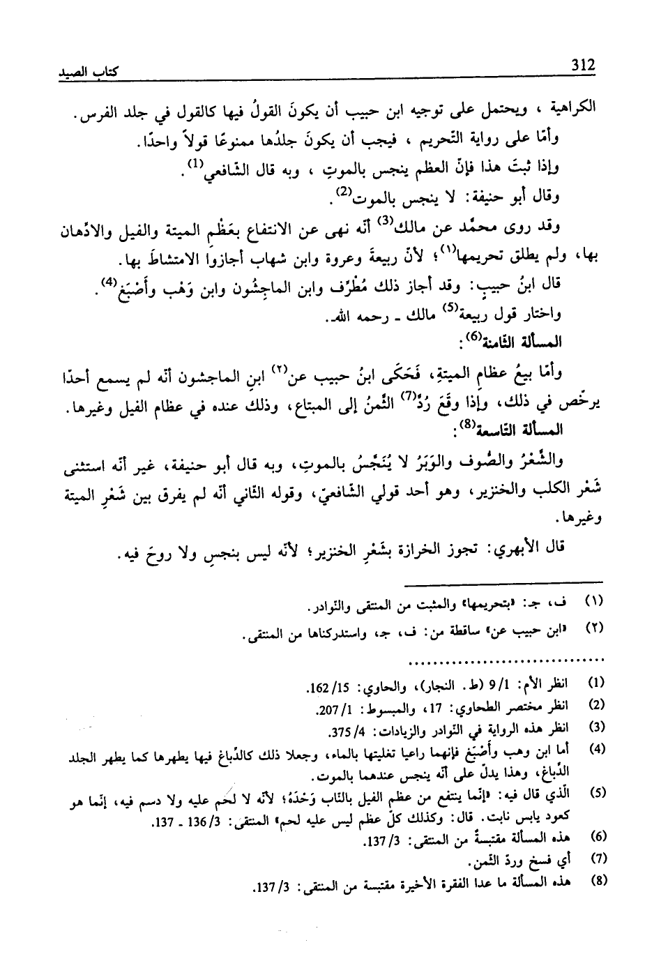 (¬5) الّذي قال فيه: "إنّما ينتفع من عظم الفيل بالنّاب وَحْدَهُ؛ لأنّه لا لحم عله ولا دسم فيه، إنّما هو كعود يابس ثابت. قال: وكذلك كلّ عظم ليس عليه لحم، المنتقي: 3/ 136 - 137.
