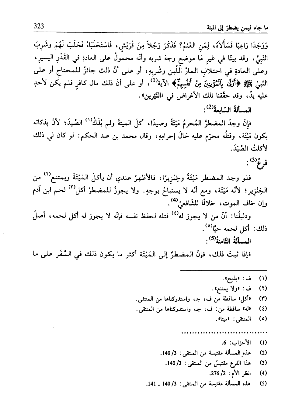 (¬5) هذه المسألة مقتبسة من المنتقى: 3/ 140 - 141.