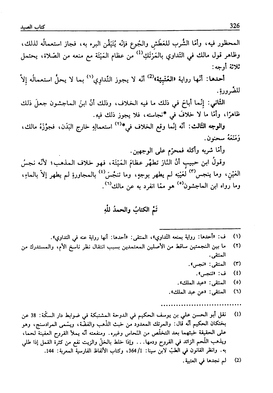 والوجه الثّالث: أنّه إنّما وقع الخلاف في* استعمالِهِ خارج البَدَن، فجوَّزهُ مالك، وَمَنعَهُ سحنون.