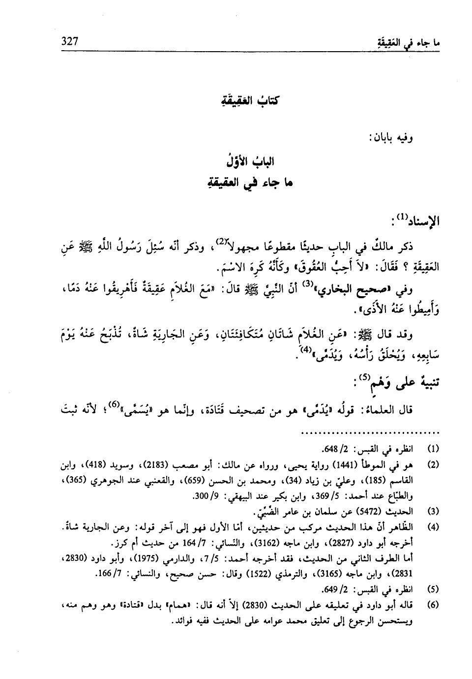 البابُ الأوَّلُ ماجاء في العقيقةِ