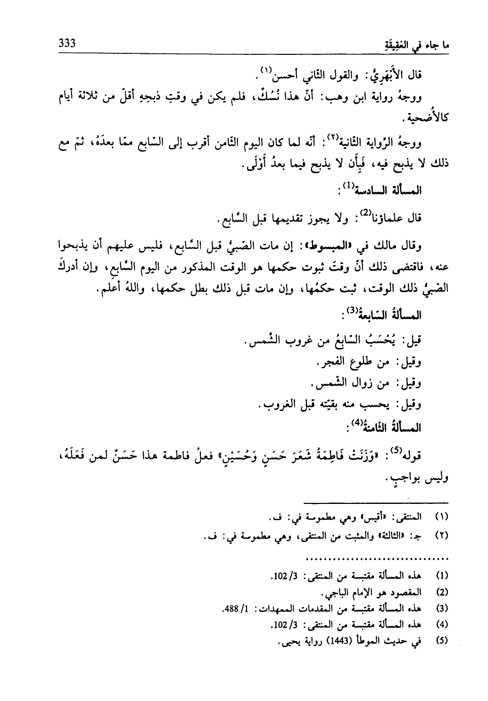 (¬4) هذه المسألة مقتبسة من المنتقى: 3/ 102.