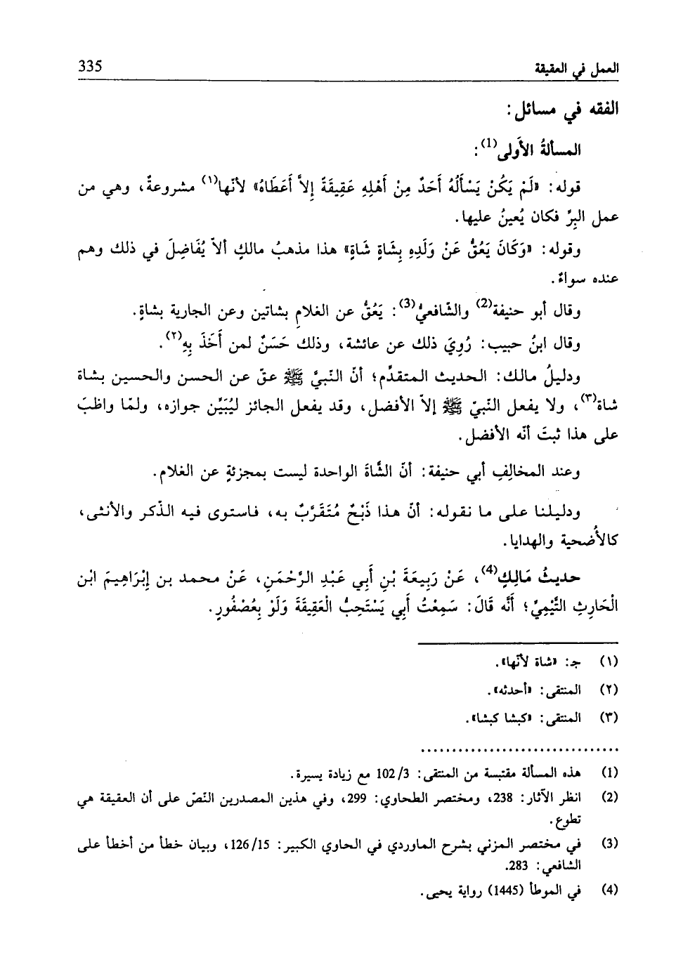 (¬1) هذه المسألة مقتبسة من المنتقى: 3/ 102 مع زيادة يسيرة.