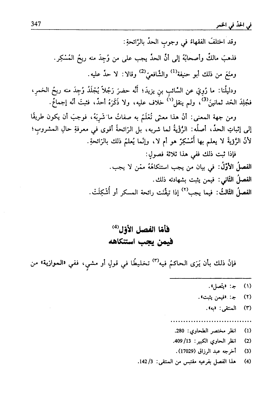 (¬4) هذا الفصل بفرعيه مقتبس من المنتقى: 3/ 142.