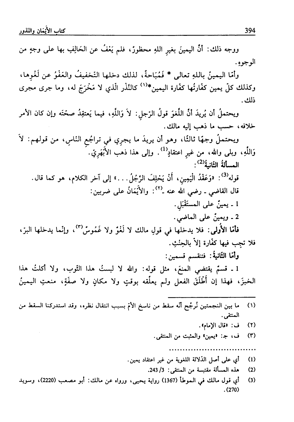 (¬2) هذه المسألة مقتبسة من المننقى: 3/ 243.