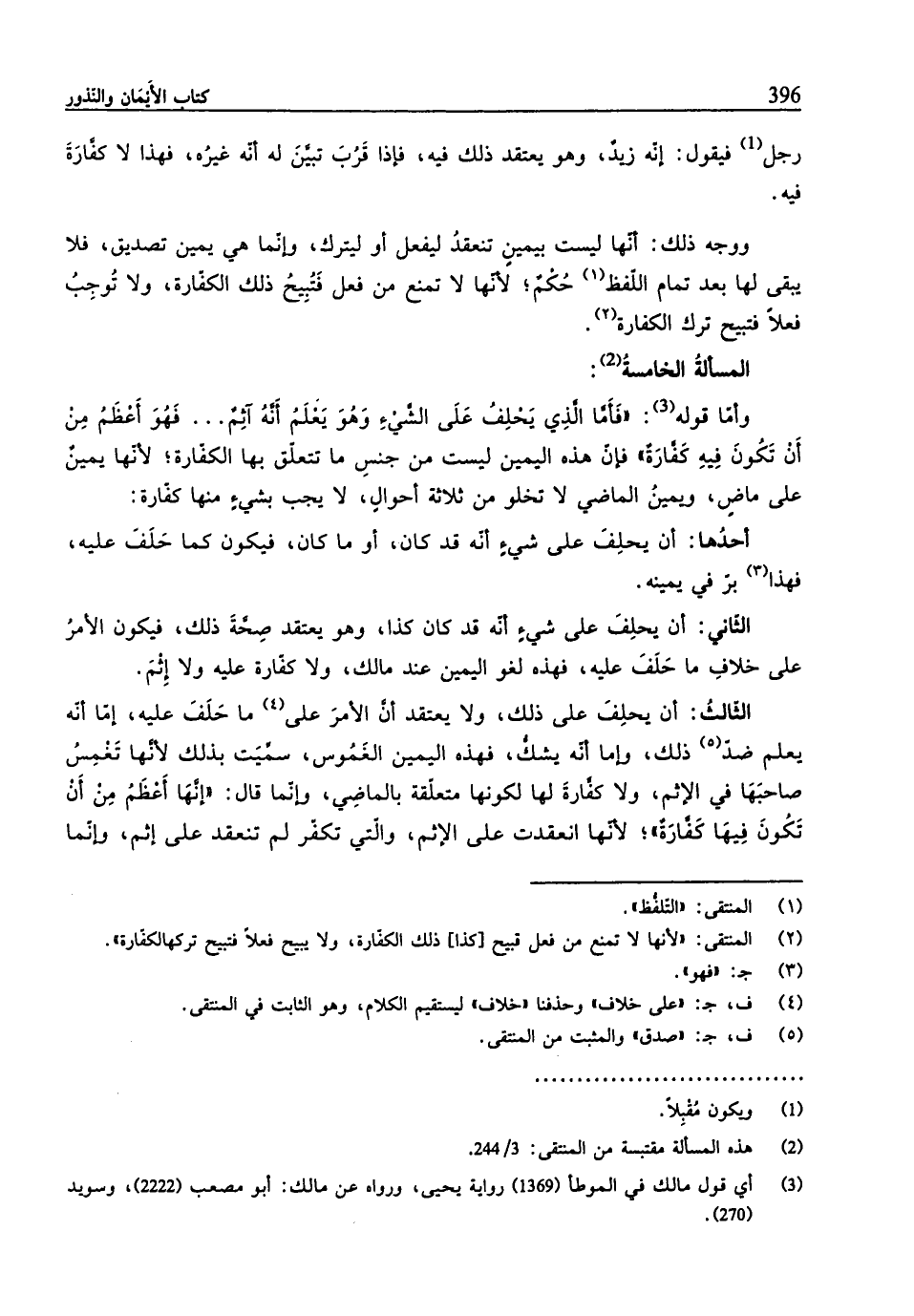رجل (¬1) فيقول: إنّه زيدٌ، وهو يعتقد ذلك فيه، فإذا قَرُبَ تبيَّنَ له أنّه غيرُه، فهذا لا كفَّارَةَ فيه.