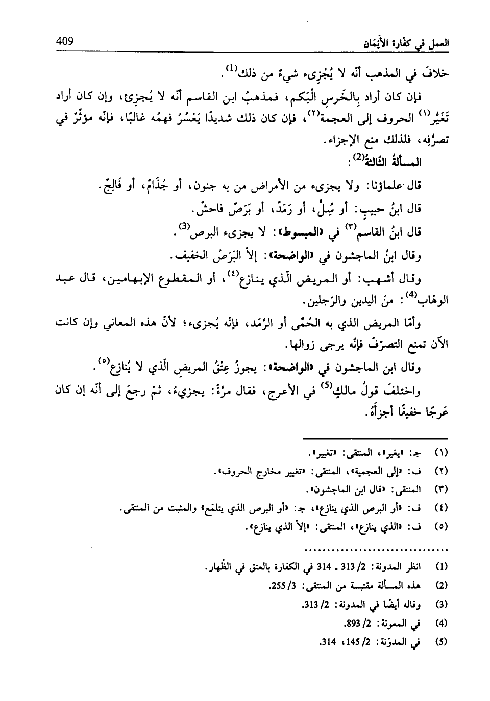 (¬2) هذه المسألة مقتبسة من المنتقى: 3/ 255.