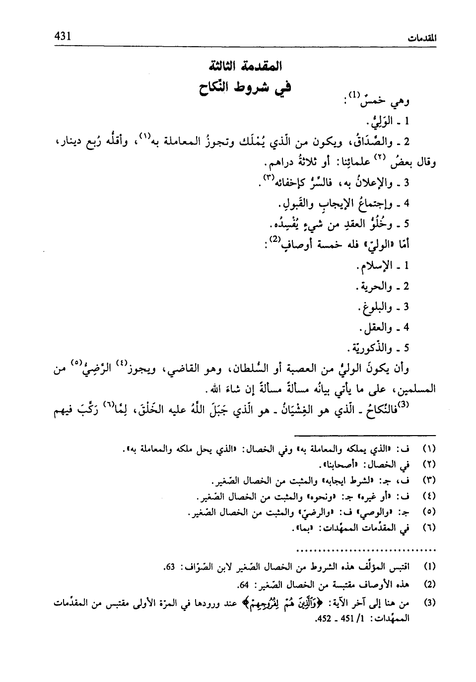 (¬3) من هنا إلى آخر الآية: {وَالَّذِينَ هُمْ لِفُرُوجِهِمْ} عند ورودها في المرّة الأولى مقتبس من المقدِّمات الممهِّدات: 1/ 451 - 452.