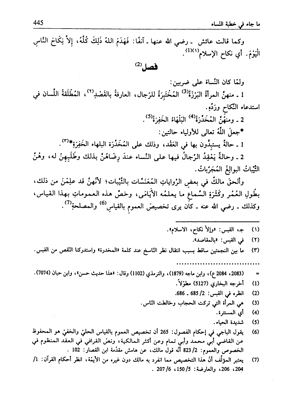 (¬7) يعتبر المؤلّف أنّ هذا التخصيص ممّا انفرد به مالك دون غيره من الأيمّة، انظر أحكام القرآن: 1/ 204، 206 والعارضة: 5/ 150، 6/ 207.