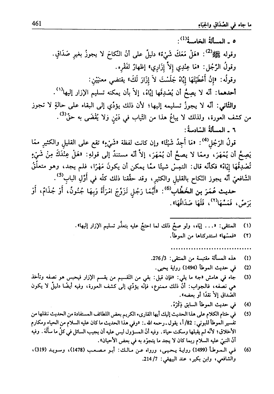 (¬6) في الموطَّأ (1499) رواية يحيى، ورواه عن مالك: أبو مصعب (1478)، وسويد (319)، والشّافعيّ، وابن بكير، عند البيهقي: 7/ 214.