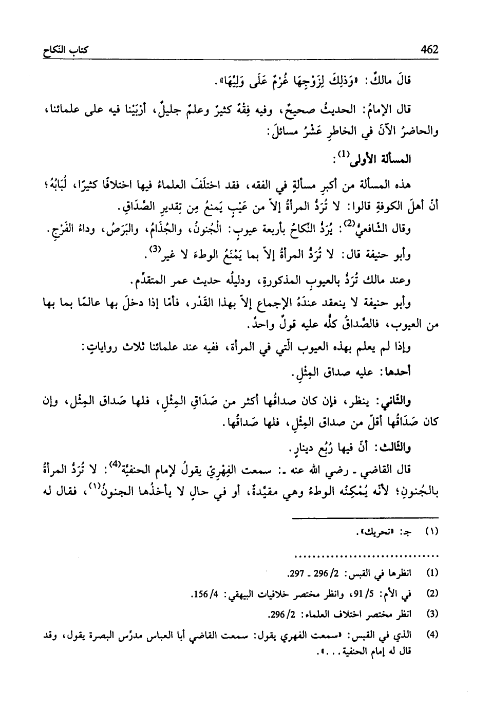 (¬4) الّذي في القبس: "سمعت الفهري يقول: سمعت القاضي أبا العباس مدرّس البصرة يقول، وقد قال له إمام الحنفية ... ".
