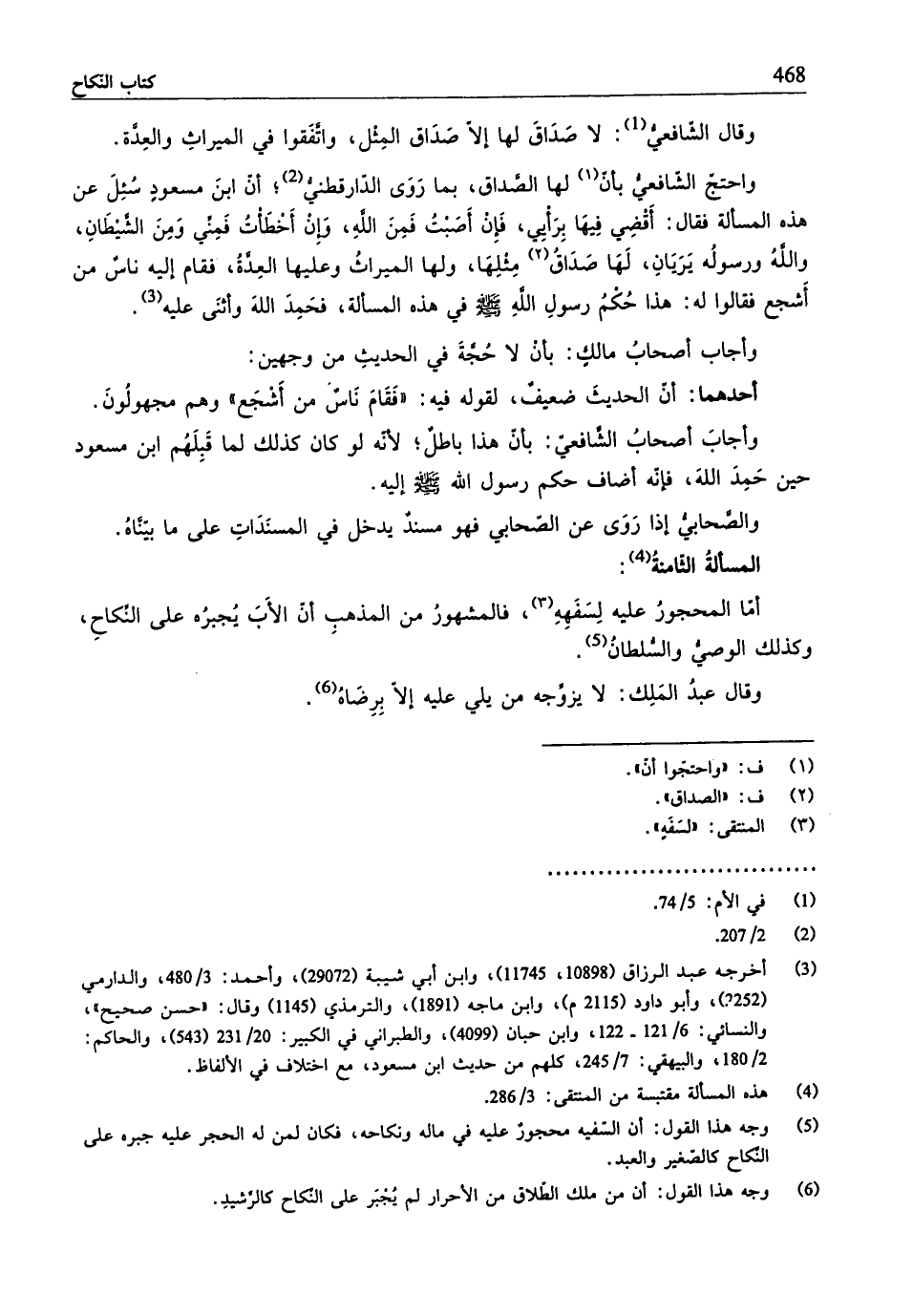 (¬3) أخرجه عبد الرزّاق (10898، 11745)، وابن أبي شيبة (29072)، وأحمد: 3/ 480، والدارمي (2252)، وأبو داود (2115 م)، وابن ماجه (1891)، والترمذي (1145) وقال: "حسن صحيح"، والنسائي: 6/ 121 - 122، وابن حبّان (4099)، والطبراني في الكبير: 20/ 231 (543)، والحاكم: 2/ 180، والبيهقي:7/ 245، كلهم من حديث ابن مسعود، مع اختلاف في الألفاظ.