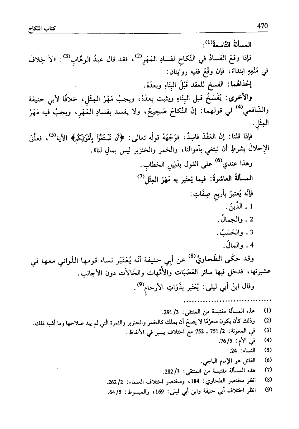 (¬1) هذه المسألة مقتبسة من المنتقى: 3/ 291.