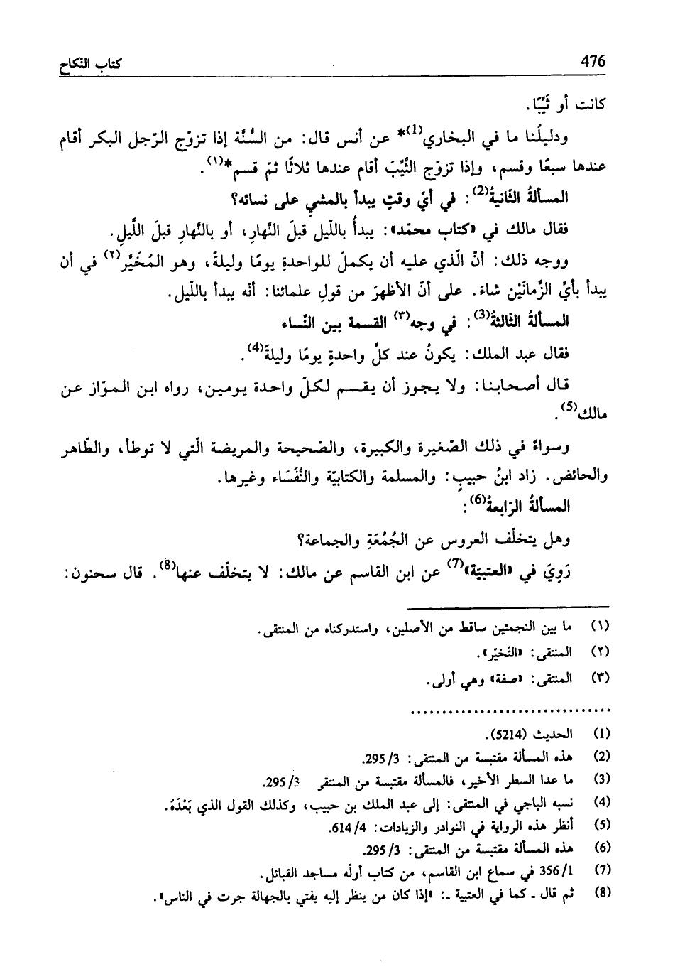 (¬6) هذه المسألة مقتبسة من المنتقى: 3/ 295.