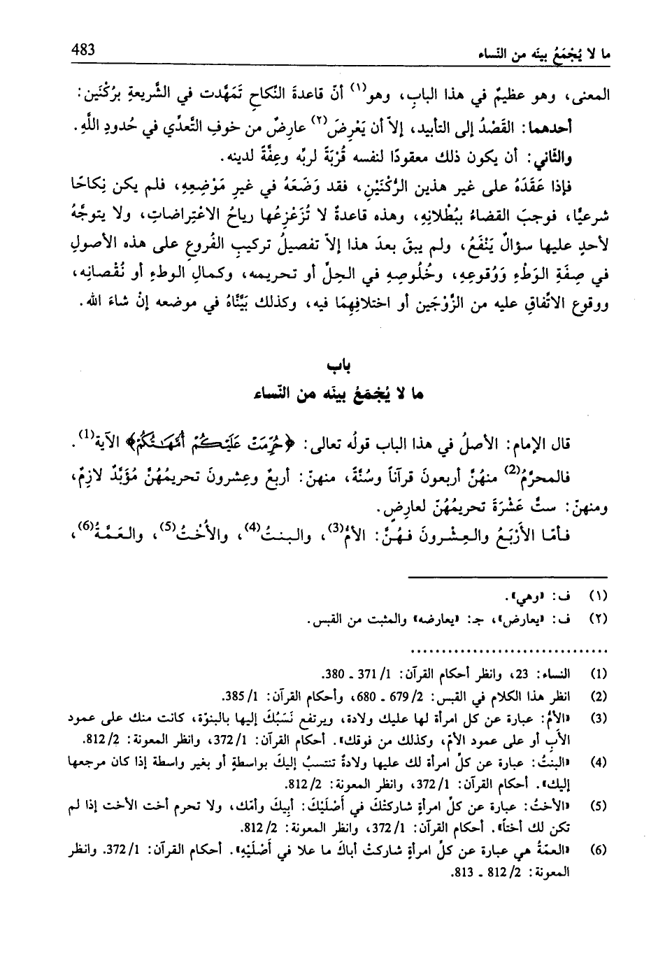 (¬1) النِّساء: 23، وانظر أحكام القرآن: 1/ 371 - 380.