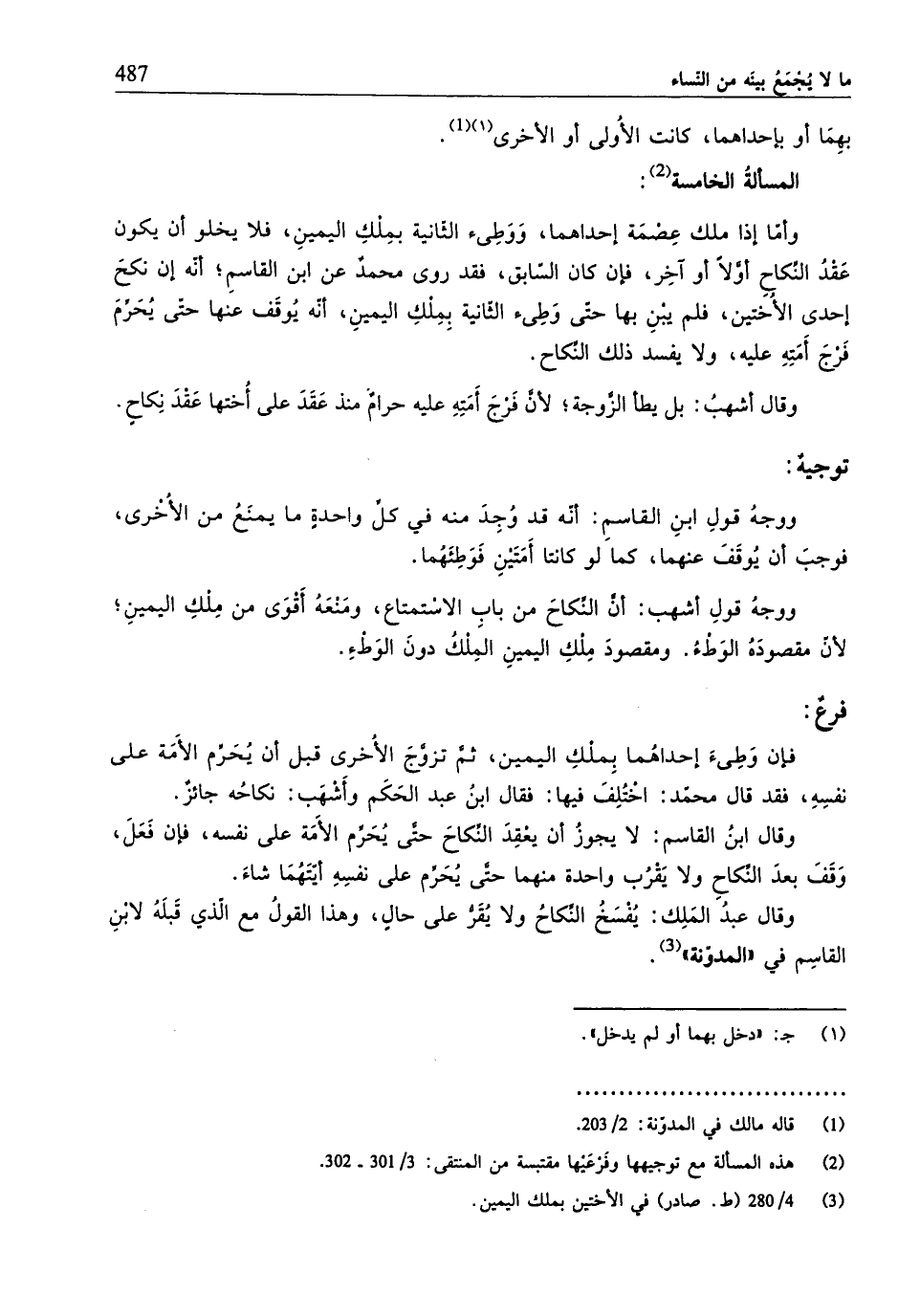 (¬3) 4/ 280 (ط. صادر) في الأختين بملك اليمين.